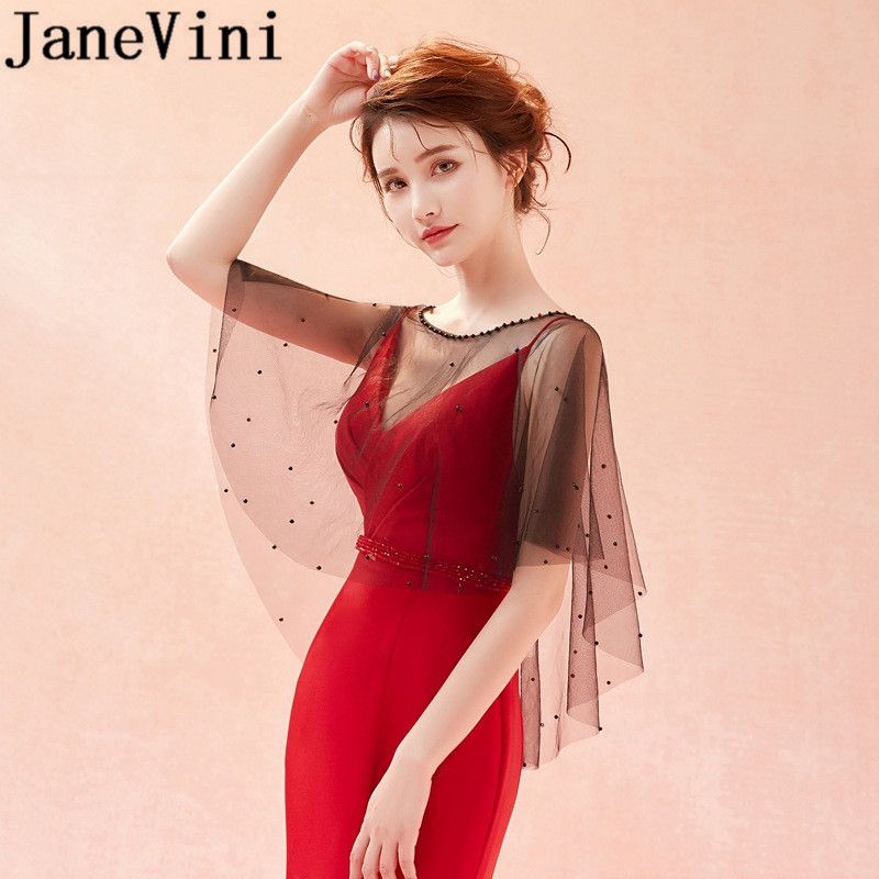 2019 Janevini 2018 Sexy Black Wedding Jackets Women With Pearls Cut