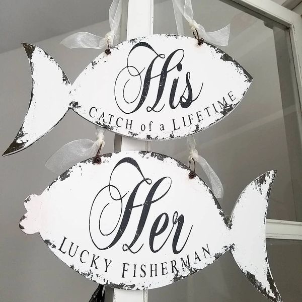 Beach Wedding Signs Her Lucky Fisherman Rustic Wedding Decor My