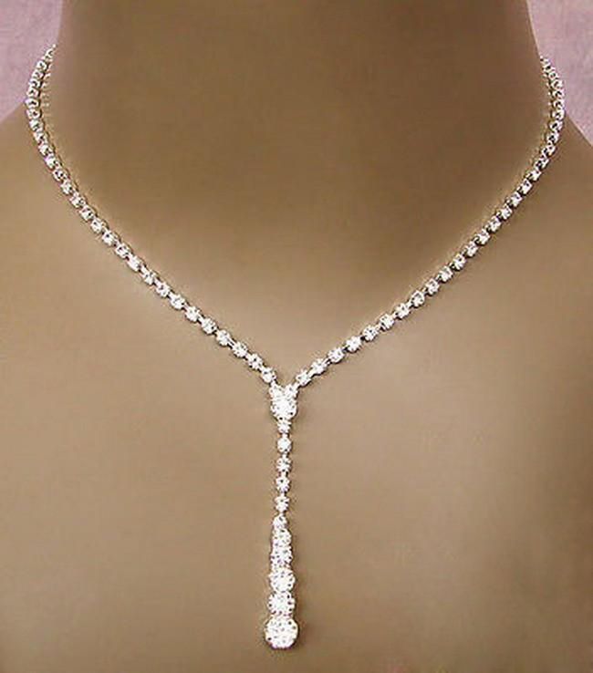 Bling Crystal Bridal Jewelry Set Silver Plated Necklace Diamond