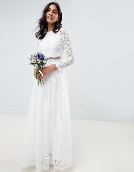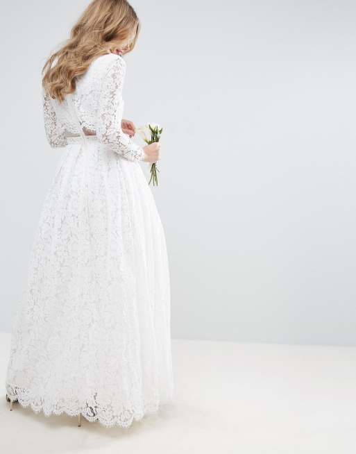 Asos Edition Lace Long Sleeve Crop Top Maxi Wedding Dress Asos
